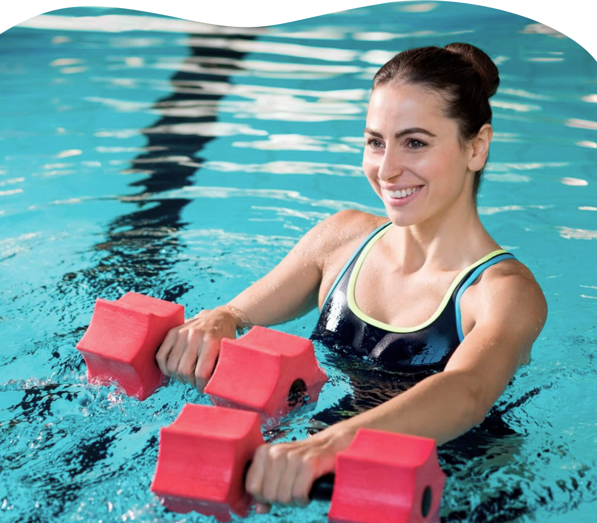 Аквааэробика — это синхронные упражнения на все основные крупные мышечные группы рук, ног, живота и спины. Занимаемся в теплом бассейне с температурой 28 градусов.